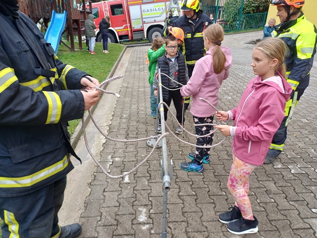 Po uspešno izvedeni evakuaciji so gasilci za učence pripravili še dodatne aktivnosti. Tako so se lahko preizkusili pri vezanju vozlov, gašenju »požara« in plezanju po lestvi. Pokazali so jim tudi svoje vozilo in povedali, čemu služijo vsi pripomočki, ki jih gasilci uporabljajo pri svojem delu. Vaja nam je pokazala, kako pomembno je znanje pravilnega ukrepanja ob izrednih razmerah, s tem pa smo dobili dragocene izkušnje.