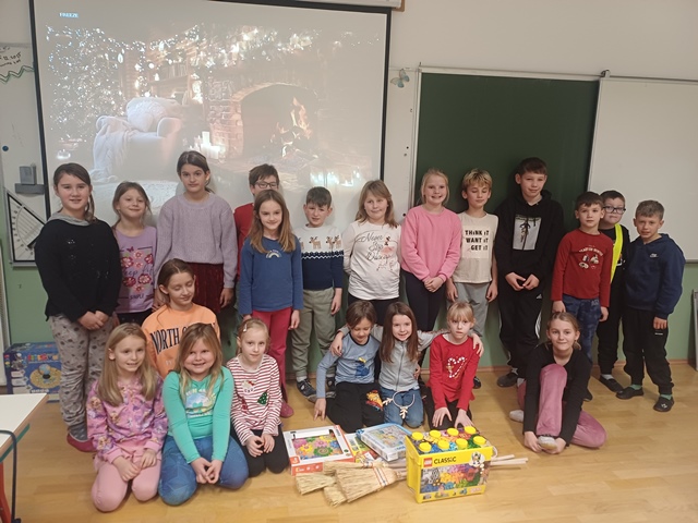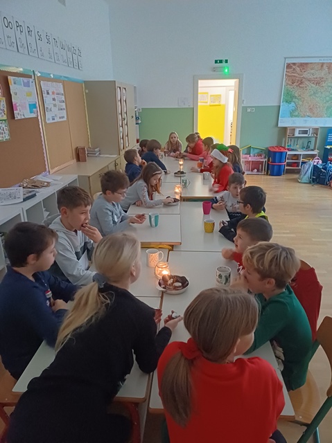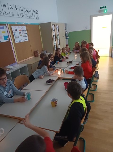 Drugi teden v decembru smo se odpravili na tabor v CŠOD Škorpijon. Po končanem taboru pa smo lahko tudi v šoli pripravili praznično vzdušje, postavili jelko in jo okrasili. Skozi cel mesec december nas je spremljal tudi adventni koledar, ki nam je popestril vsakdan z zanimivimi nalogami. Zadnji teden pred počitnicami pa smo se vsak dan pred poukom najprej zbrali na jutranji čajanki, malo poklepetali in se posladkali s piškoti. Za posebno presenečenje nas je obiskal celo Dedek Mraz, ki nam je prinesel darila, ki smo jih bili zelo veseli in jih bomo z veseljem uporabljali med poukom in igro.